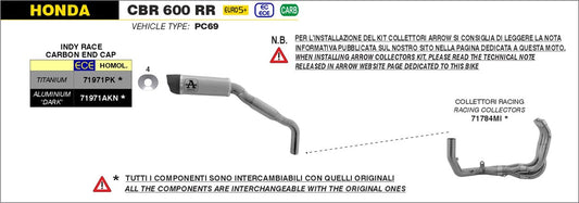 ARROW SISTEMA COMPLETO INDY RACE DARK HOMOLOGADO HONDA CBR 600RR 2024-25