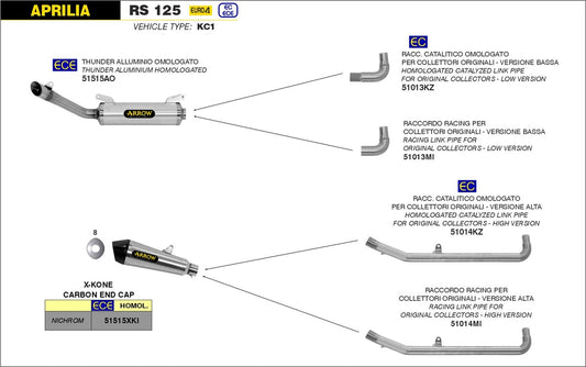 ARROW CONECTOR CATALÍTICO HOMOLOGADO VERSION ALTA 51014KZ APRILIA RS 125 2018-20